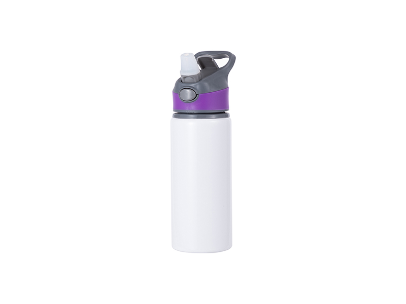 Botella Aluminio 20OZ/650ml Tapa Morada (Blanco)