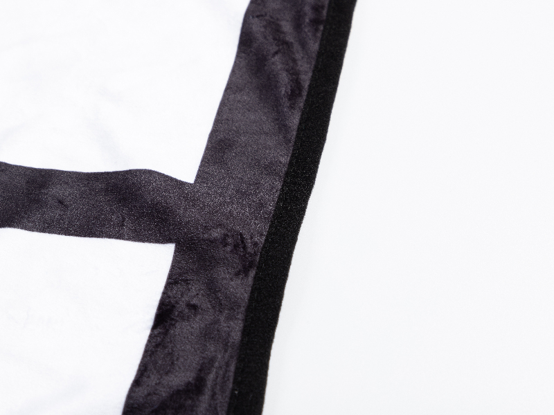 Material: Pelúcia. Un lado com 9 painéis brancos prontos para sublimação. O outro lado é de pelúcia de cor preta.